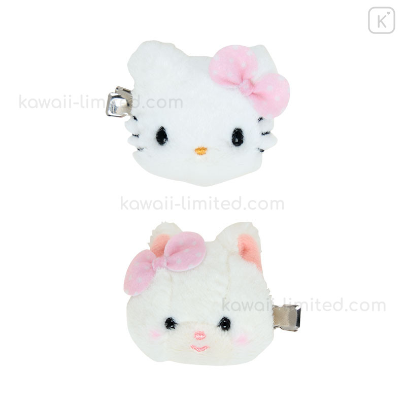 Japan Sanrio Original × Yoshitoku Retro Plush Collection Face-shaped Hair Clip - Hello Kitty : Creamy Cat