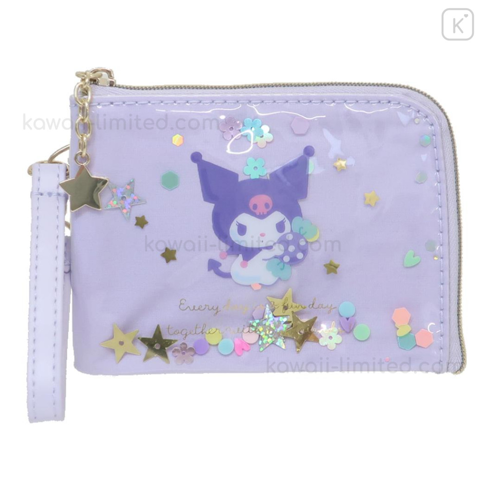 Japan Sanrio Pass Case Card Holder & Coin Case & Reel - Kuromi : Everyday Is A Fun Day Togther With Friends