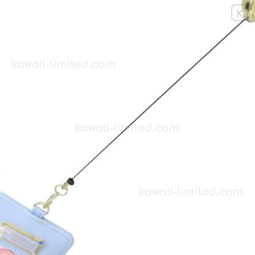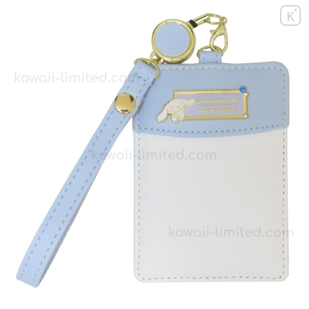Japan Sanrio Pass Case Card Holder & Reel - Cinnamoroll : Blue Gold Embossed