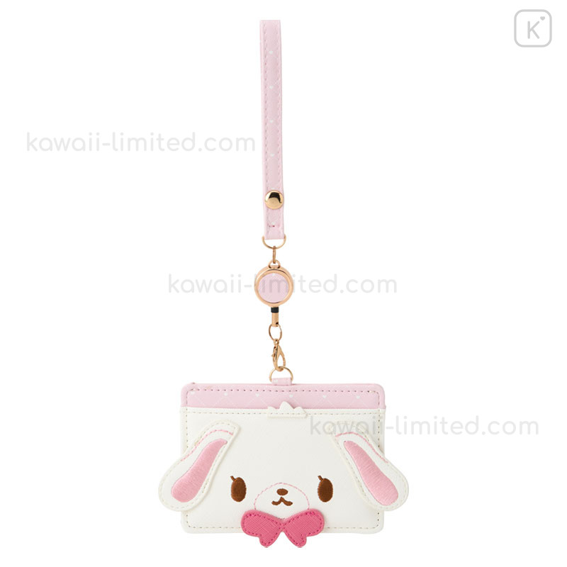 Japan Sanrio Pass Case Card Holder & Reel - Sugarbunnies : Shirousa Face Pink
