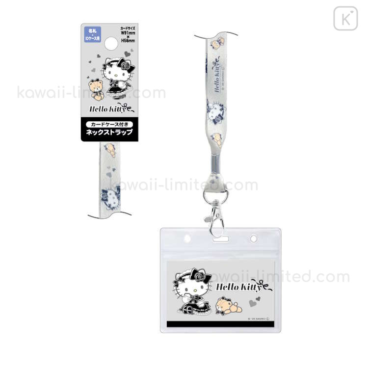 Japan Sanrio Pass Case Card Holder with Neck Strap - Hello Kitty & Tiny Chum : Lolita Black
