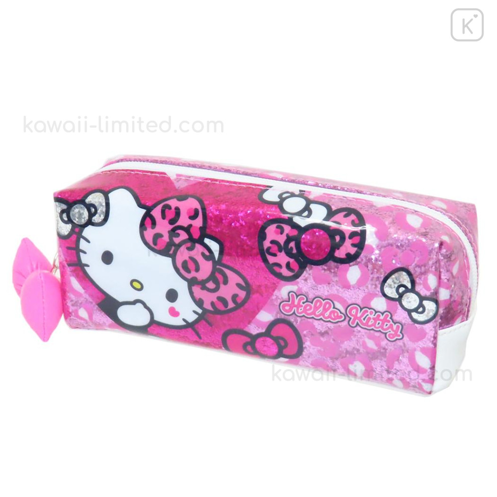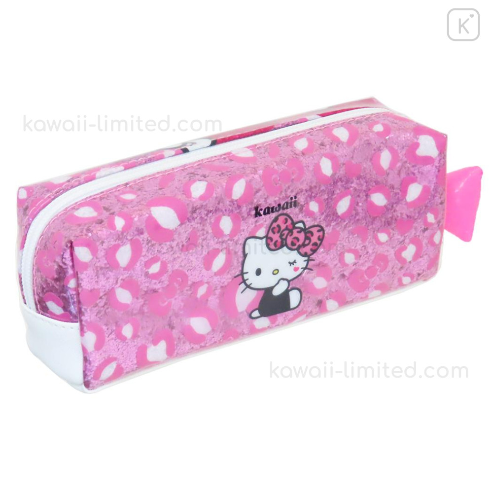 Japan Sanrio Pen Pouch Pencil Case - Hello Kitty : Gal Art Big Ribbon Leopard