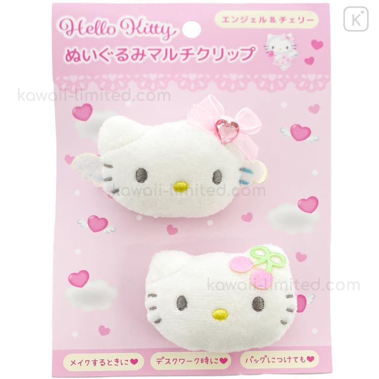 Japan Sanrio Plush Multi Clip Set - Hello Kitty : Angel & Cherry
