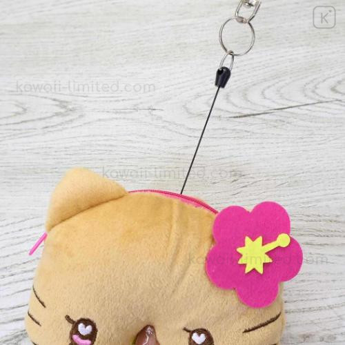 Japan Sanrio Plush Pass Case Pouch with Reel - Hello Kitty : Heart Eyes Tan Y2K