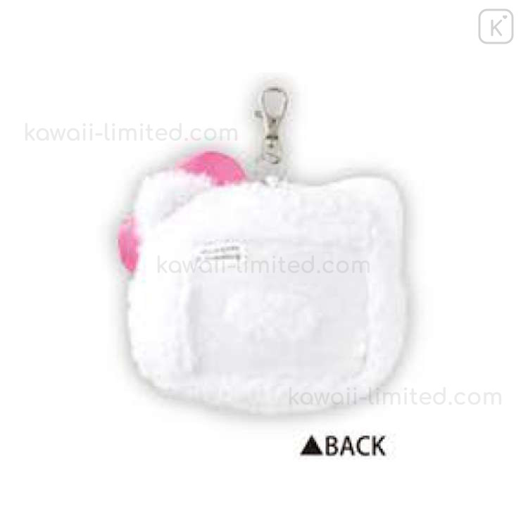 Japan Sanrio Plush Pass Case with Reel - Hello Kitty : Face Ribbon Heart