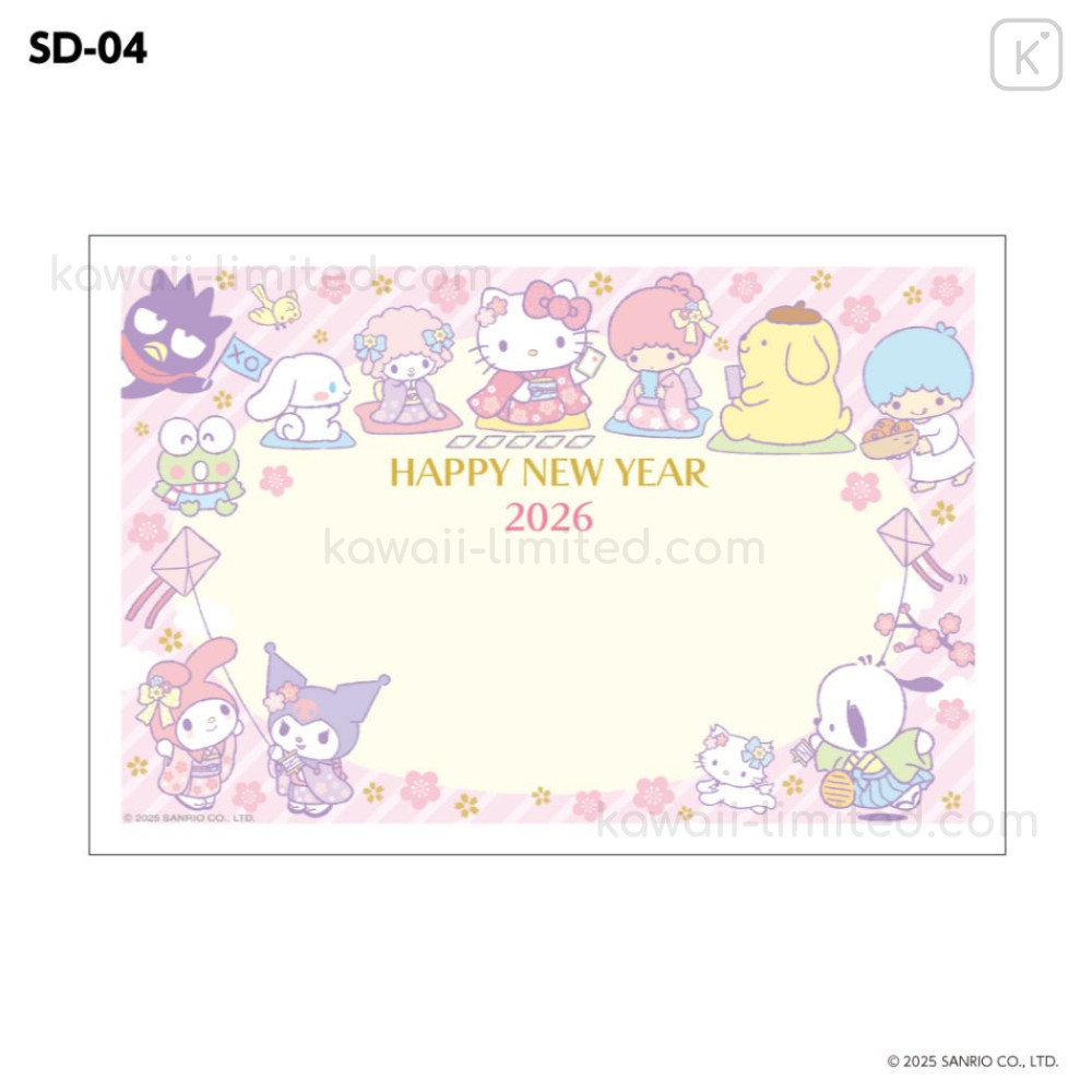 Japan Sanrio Postcard Set - Characters Kimono Happy New Year Greeting Card 2026