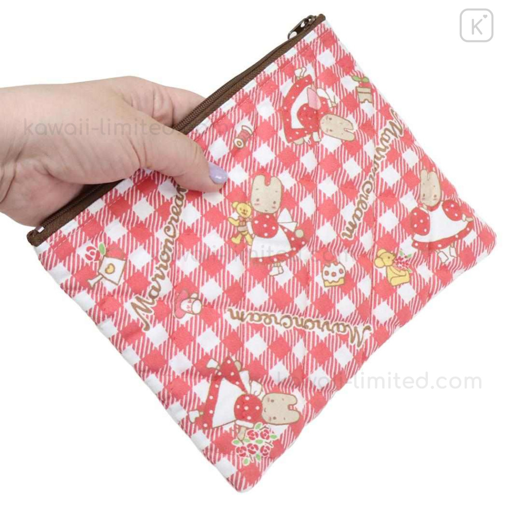 Japan Sanrio Quilted Cosmetic Pouch - Marron Cream : Check Red