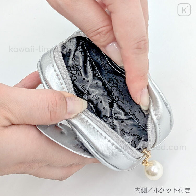 Japan Sanrio Quilted Heart Pouch - Hello Kitty : Black Angel Silver