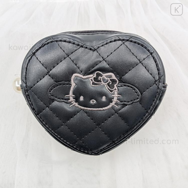 Japan Sanrio Quilted Heart Pouch - Hello Kitty : Black Angel