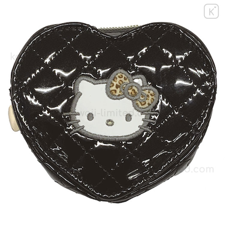 Japan Sanrio Quilted Heart Pouch - Hello Kitty : Y2k Houndstooth Enamel Black