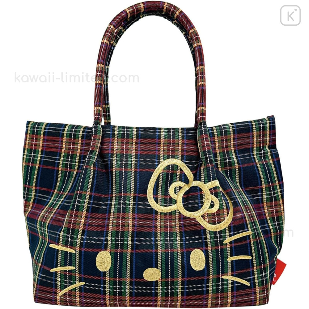 Japan Sanrio Rootote Deli Tote Bag - Hello Kitty : Tartan Navy