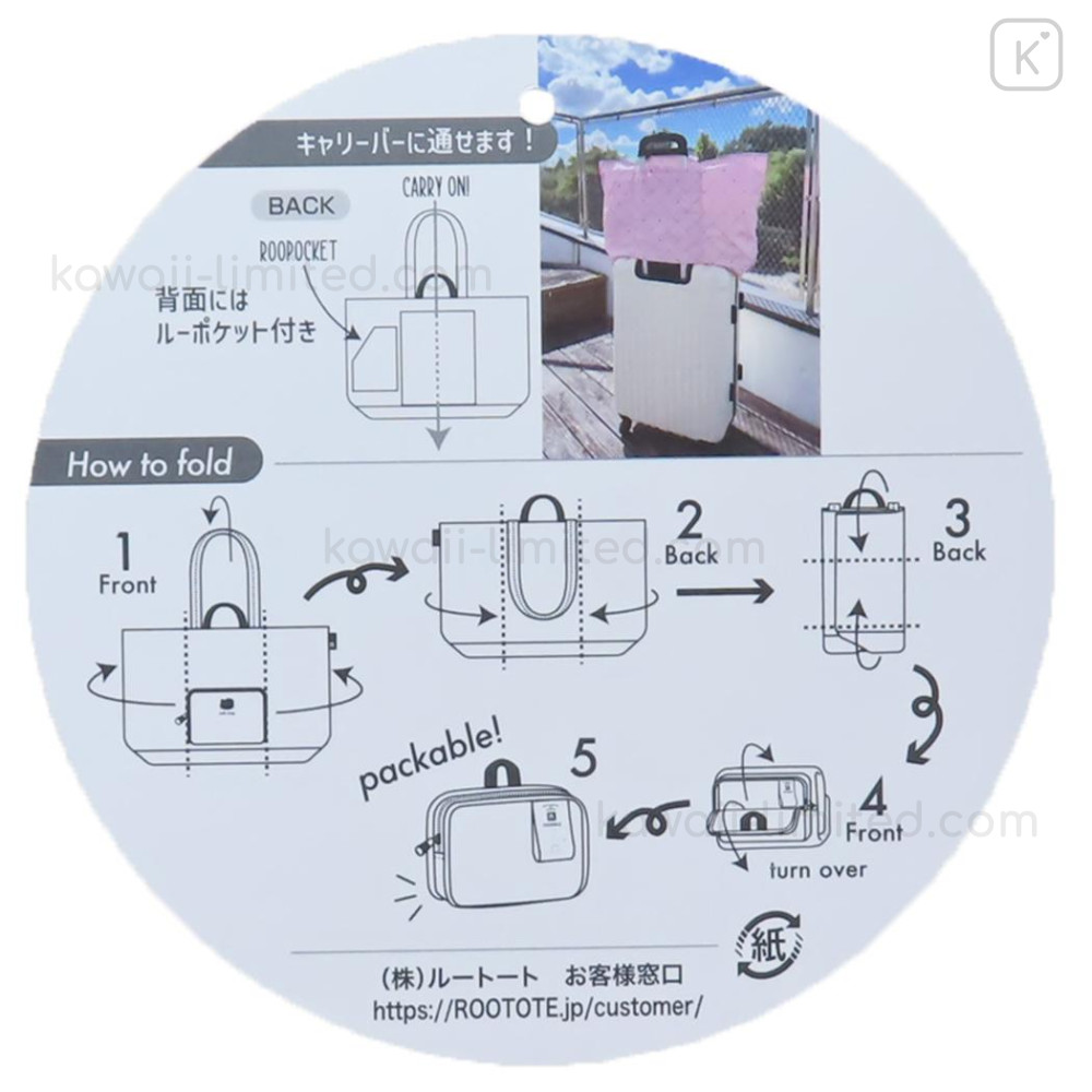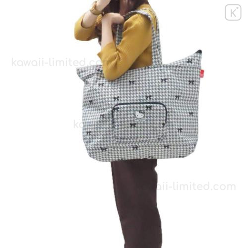 Japan Sanrio Rootote Grande Packable Tote Bag - Hello Kitty : Black Houndstooth Travel