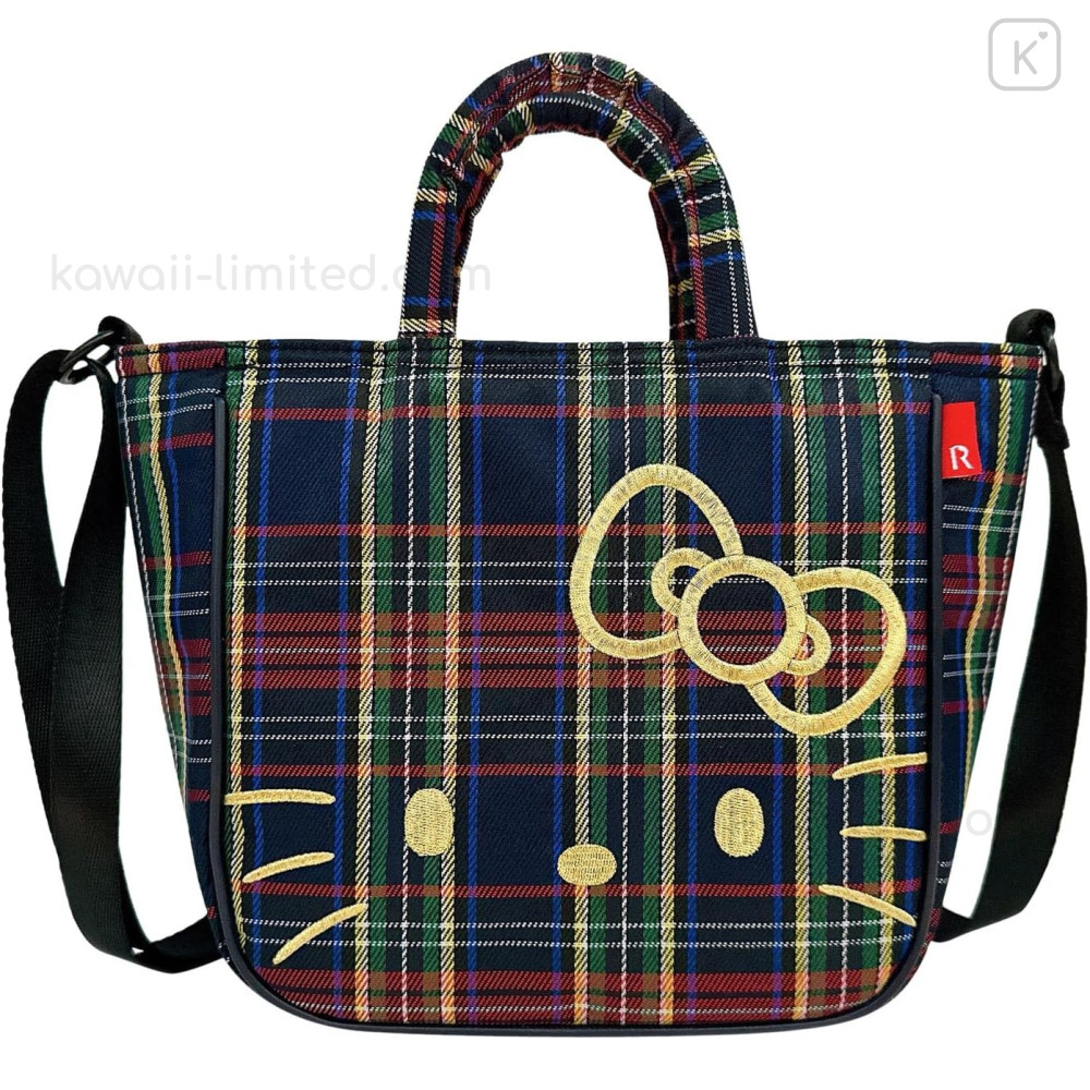 Japan Sanrio Rootote Small Shoulder Crossbody Bag - Hello Kitty : Tartan Navy