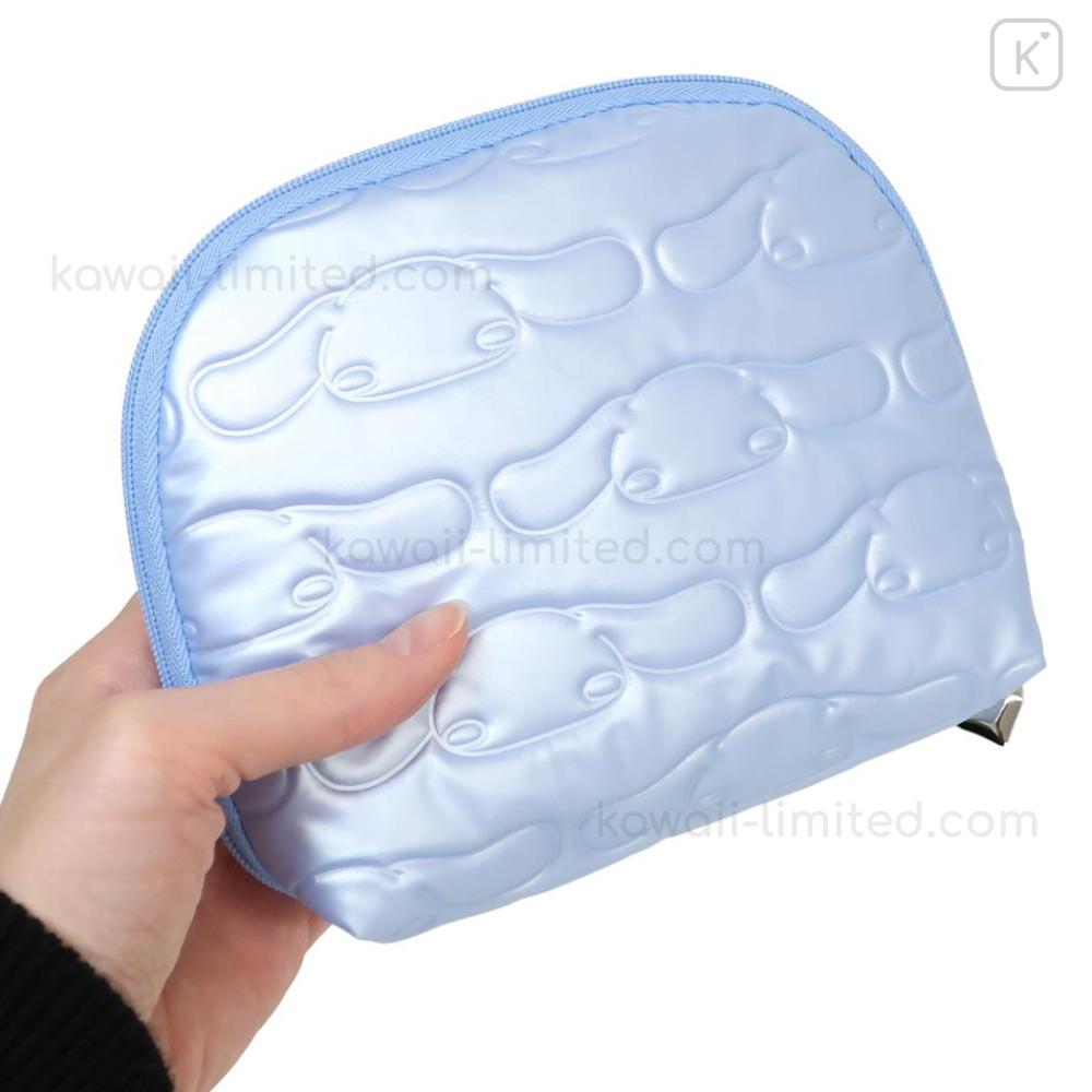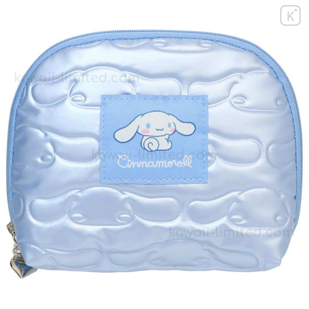 Japan Sanrio Round Cosmetic Pouch - Cinnamoroll : Glossy Pearlescent Embossed