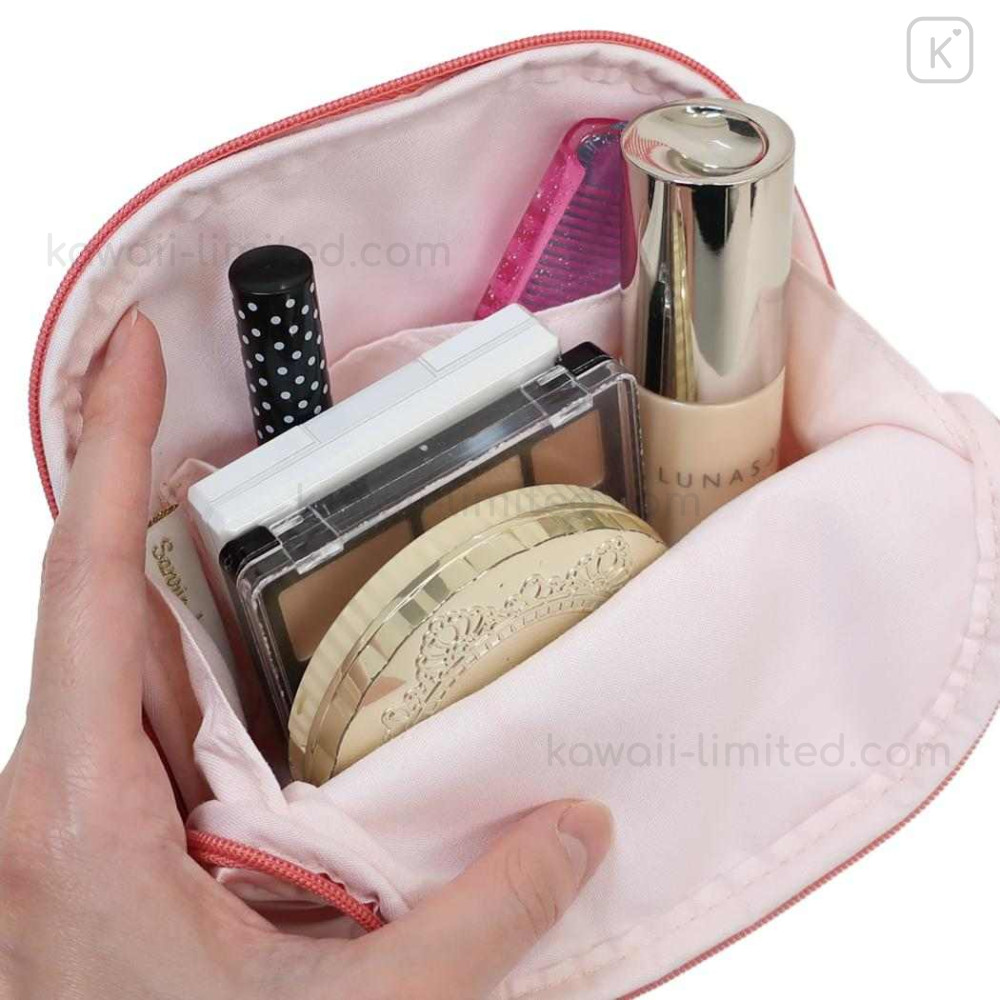 Japan Sanrio Round Cosmetic Pouch - Hello Kitty : Glossy Pearlescent Embossed