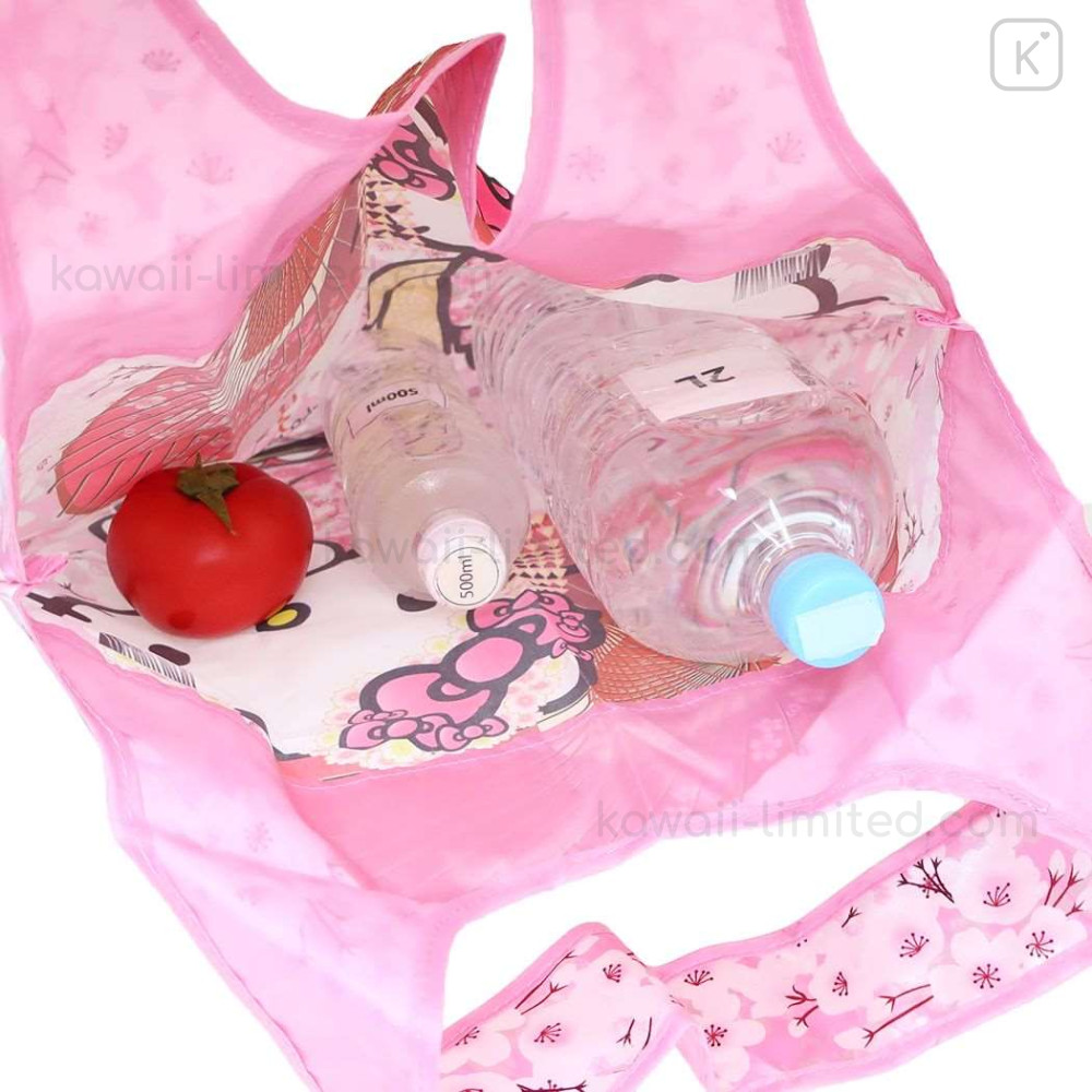Japan Sanrio Satin Eco Bag with Pouch - Hello Kitty : Japanese Pattern Blossom Umbrella