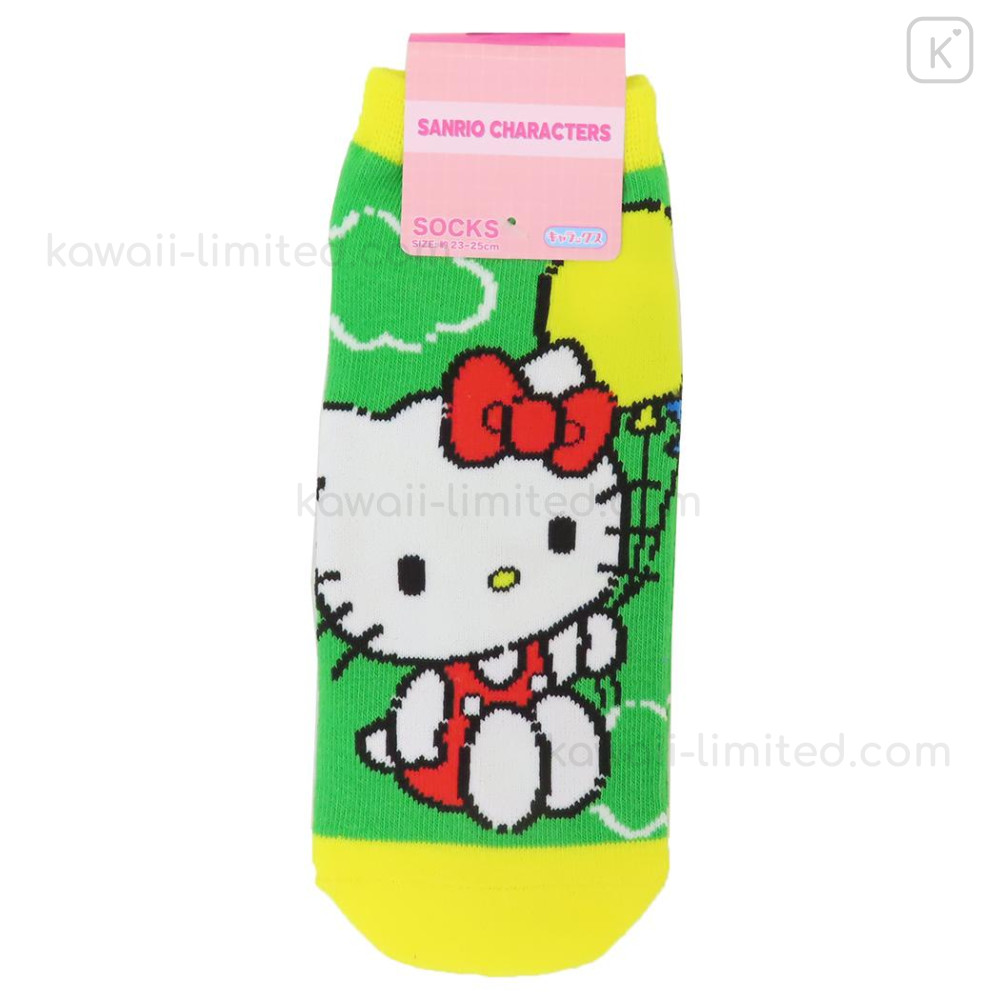Japan Sanrio Socks - Hello Kitty : Balloons Yellow Green