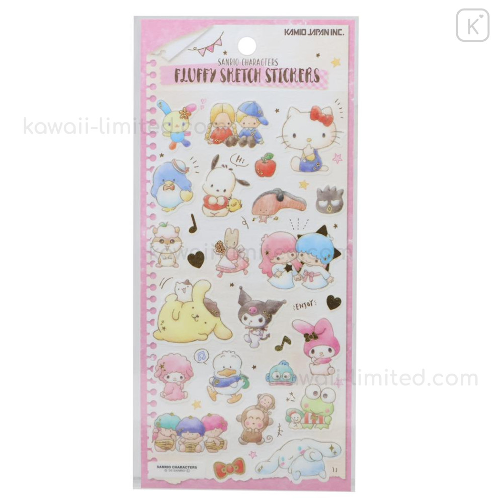 Japan Sanrio Soft Cloth Sticker - Fluffy Sketch Characters Pink