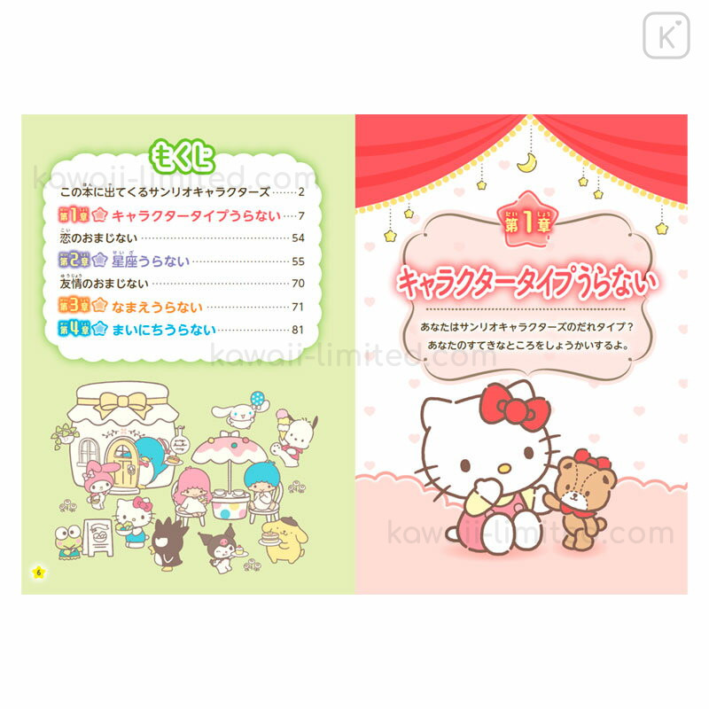 - Starting with the "Character Type Fortune Telling" where you can find out your type from 20 Sanrio characters, you can also enjoy horoscope fortune telling, name fortune telling, and daily fortune telling.
