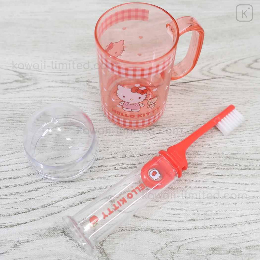 Japan Sanrio Toothbrush Set - Hello Kitty : Gingham Red