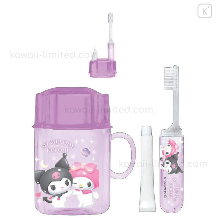 Japan Sanrio Toothbrush Set - Kuromi & My Melody : Pastel Dreamland Purple