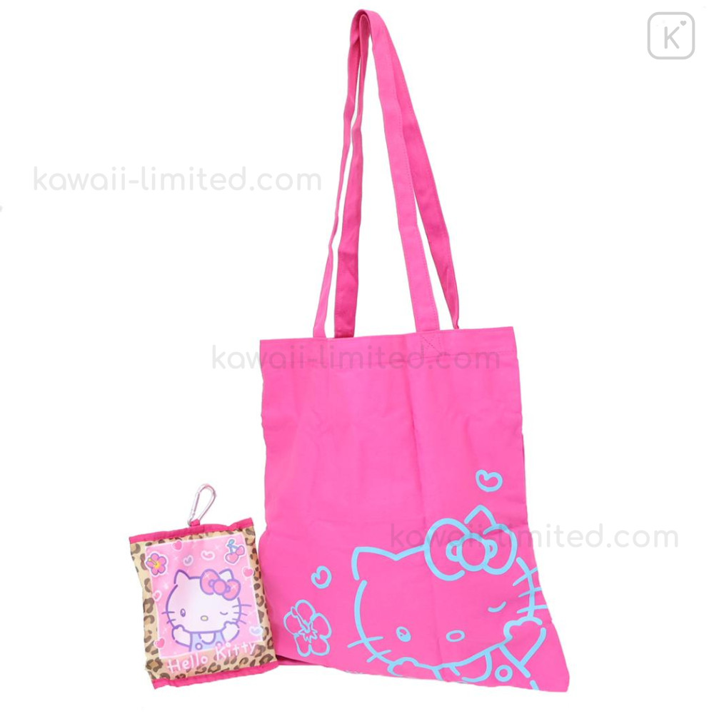 Japan Sanrio Tote Bag With Pouch Carabiner - Hello Kitty : Heart-pounding Memories Heisei Retro