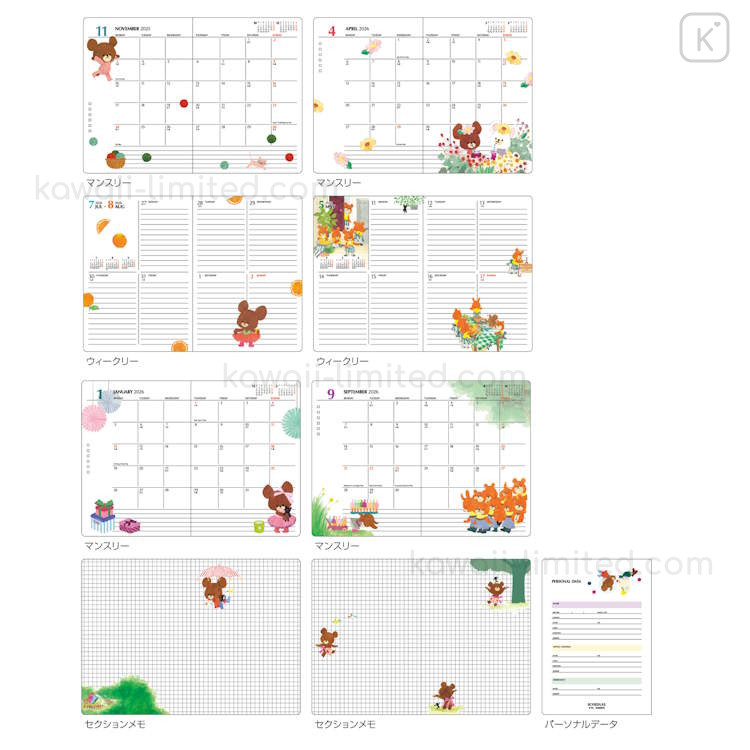 Japan The Bear's School B6 Planner Monthly & Weekly Schedule Book - Flower Navy 2026